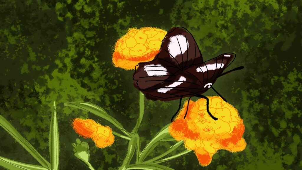 전시회에서 눈에 띄는 작품으로는, 나비를 그린