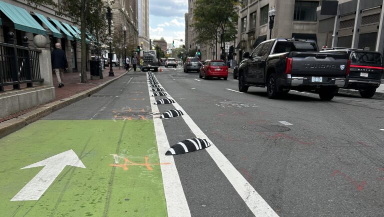지난주, 시청은 백베이의 아링턴 스트리트 자전거 도로에 새로운 방어 장치를 설치하기 시작했습니다. 이는 플라스틱 유연 포스트 볼라드를 더 내구성이 높은...
