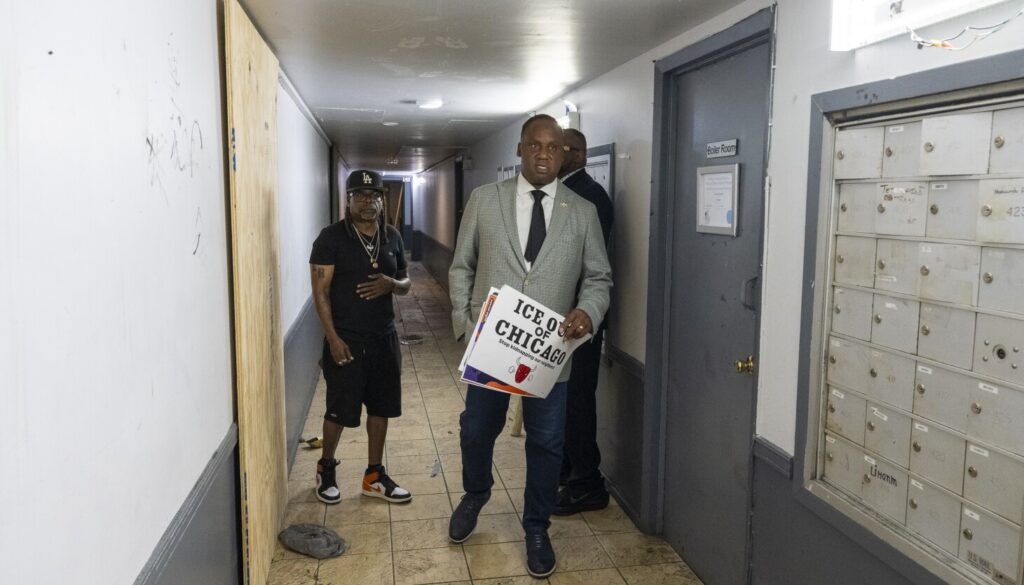 일요일 기자회견에서 의원들은 행동가 및 단속의 영향을 받은 주민들과 함께 연대와 협력을 촉구했다. 사우스 쇼어 건물에서 구금된 주민들 중 다수는 흑인이다.